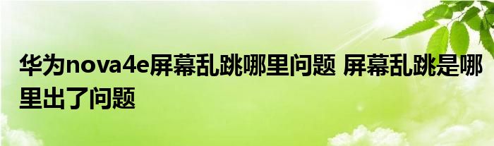 大家好,小詹來為大家解答以上問題。華為nova4e屏幕亂跳哪里問題,屏幕亂跳是哪里出了問題很多人還不知道,現在讓我們一起來看看吧!