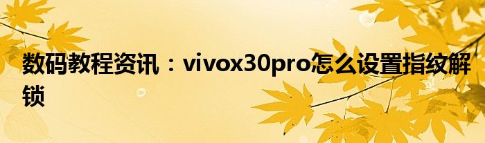 現(xiàn)在各種各樣的數(shù)碼設(shè)備在我們的生活當(dāng)中幾乎可以說是無處不在,平時我們使用的手機,IP,電腦等等這些都屬于數(shù)碼設(shè)備,那么這些數(shù)碼設(shè)備當(dāng)中會存在著很多的功能,當(dāng)然在我們使用的過程當(dāng)中自然也會出現(xiàn)說各種的問題,那么我們?nèi)绾尾拍苋ソ鉀Q這些問題以及使用好這些功能呢?這個時候就需要我們?nèi)チ私膺@些功能及問題的解決方法,今天小編就來給大家分享下,關(guān)于vivox30pro怎么設(shè)置指紋解鎖方面的問題及功能的詳細(xì)內(nèi)容,希望下面小編為大家分享的內(nèi)容對大家來說有一定的幫助哦。vivox30pro怎么設(shè)置指紋解鎖