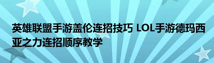 以上就是關于LOL手游德瑪西亞之力連招順序教學的內容,讓我們一起來期待這個英雄吧,喜歡這個英雄的玩家們千萬不要錯過哦!