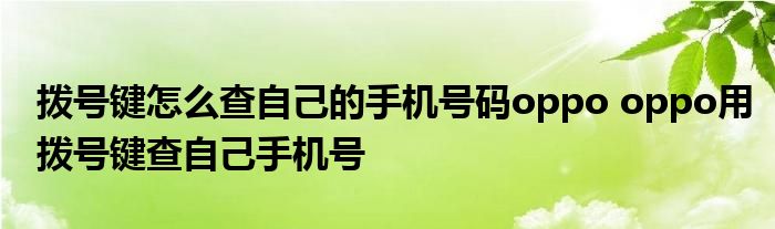 大家好,小琪來為大家解答以上問題。撥號鍵怎么查自己的手機號碼oppo,oppo用撥號鍵查自己手機號這個很多人還不知道,現在讓我們一起來看看吧!