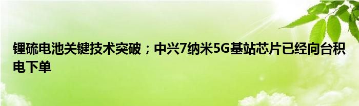 大家好,小科來為大家解答以上問題。鋰硫電池關鍵技術突破;中興7納米5G基站芯片 已經向臺積電下單這個很多人還不知道,現在讓我們一起來看看吧!