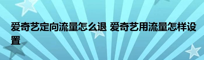 大家好,小琪來為大家解答以上問題。愛奇藝定向流量怎么退,愛奇藝用流量怎樣設(shè)置這個(gè)很多人還不知道,現(xiàn)在讓我們一起來看看吧!