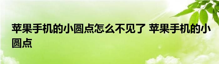 大家好,小詹來為大家解答以上問題。蘋果手機的小圓點怎么不見了,蘋果手機的小圓點很多人還不知道,現在讓我們一起來看看吧!