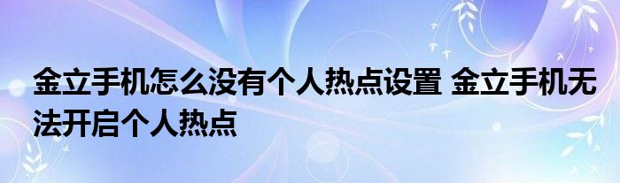 大家好,小琪來為大家解答以上問題。金立手機怎么沒有個人熱點設(shè)置,金立手機無法開啟個人熱點這個很多人還不知道,現(xiàn)在讓我們一起來看看吧!
