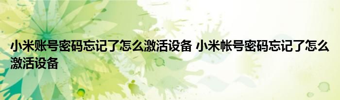 大家好,小詹來為大家解答以上問題。小米賬號密碼忘記了怎么激活設(shè)備,小米帳號密碼忘記了怎么激活設(shè)備很多人還不知道,現(xiàn)在讓我們一起來看看吧!