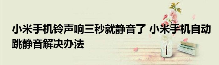 大家好,小詹來為大家解答以上問題。小米手機鈴聲響三秒就靜音了,小米手機自動跳靜音解決辦法很多人還不知道,現在讓我們一起來看看吧!