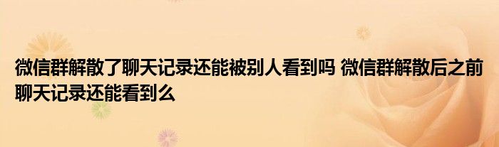 大家好,小琪來為大家解答以上問題。微信群解散了聊天記錄還能被別人看到嗎,微信群解散后之前聊天記錄還能看到么這個(gè)很多人還不知道,現(xiàn)在讓我們一起來看看吧!