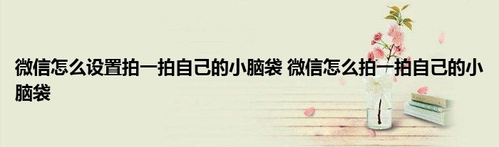 大家好,小琪來為大家解答以上問題。微信怎么設置拍一拍自己的小腦袋,微信怎么拍一拍自己的小腦袋這個很多人還不知道,現在讓我們一起來看看吧!