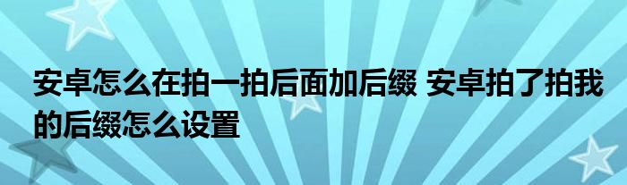 大家好,小琪來為大家解答以上問題。安卓怎么在拍一拍后面加后綴,安卓拍了拍我的后綴怎么設置這個很多人還不知道,現在讓我們一起來看看吧!