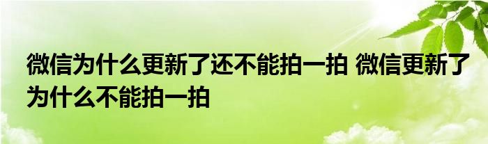 大家好,小琪來為大家解答以上問題。微信為什么更新了還不能拍一拍,微信更新了為什么不能拍一拍這個很多人還不知道,現在讓我們一起來看看吧!