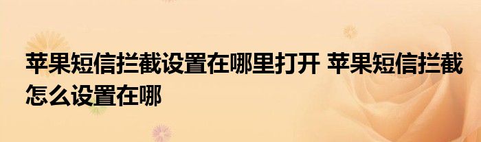 大家好,小琪來為大家解答以上問題。蘋果短信攔截設(shè)置在哪里打開,蘋果短信攔截怎么設(shè)置在哪這個很多人還不知道,現(xiàn)在讓我們一起來看看吧!