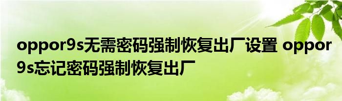 大家好,小琪來為大家解答以上問題。oppor9s無需密碼強制恢復出廠設置,oppor9s忘記密碼強制恢復出廠這個很多人還不知道,現在讓我們一起來看看吧!