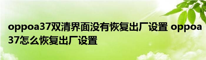 大家好,小琪來為大家解答以上問題。oppoa37雙清界面沒有恢復(fù)出廠設(shè)置,oppoa37怎么恢復(fù)出廠設(shè)置這個很多人還不知道,現(xiàn)在讓我們一起來看看吧!