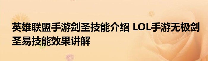 以上就是關于LOL手游無極劍圣易技能效果講解的內容,讓我們一起來期待這個英雄吧,喜歡這個英雄的玩家們千萬不要錯過哦!