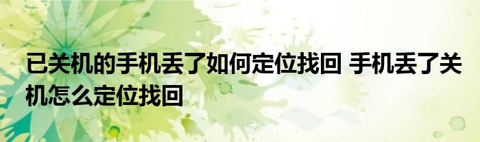 大家好,小琪來為大家解答以上問題。已關機的手機丟了如何定位找回,手機丟了關機怎么定位找回這個很多人還不知道,現在讓我們一起來看看吧!