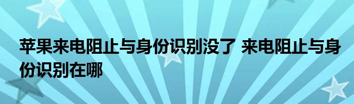 大家好,小詹來為大家解答以上問題。蘋果來電阻止與身份識別沒了,來電阻止與身份識別在哪很多人還不知道,現在讓我們一起來看看吧!