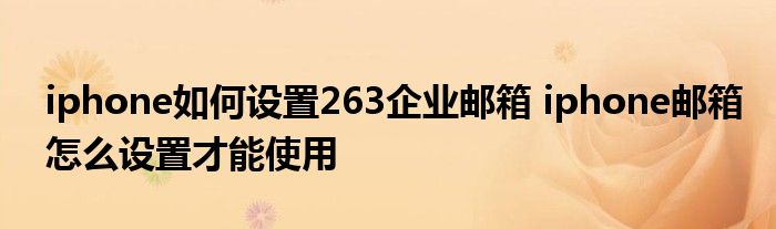 大家好,小詹來為大家解答以上問題。iphone如何設置263企業(yè)郵箱,iphone郵箱怎么設置才能使用很多人還不知道,現在讓我們一起來看看吧!
