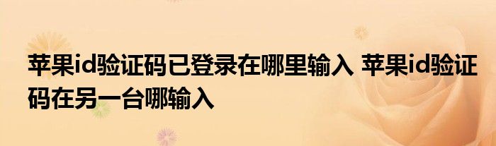 大家好,小詹來為大家解答以上問題。蘋果id驗證碼已登錄在哪里輸入,蘋果id驗證碼在另一臺哪輸入很多人還不知道,現在讓我們一起來看看吧!