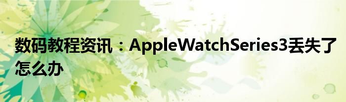 小編給大家介紹的關于Apple Watch Series 3丟失了怎么辦的一些介紹,希望可以幫助到大家更多精彩資訊請關注