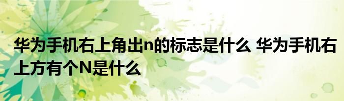 大家好,小琪來為大家解答以上問題。華為手機(jī)右上角出n的標(biāo)志是什么,華為手機(jī)右上方有個(gè)N是什么這個(gè)很多人還不知道,現(xiàn)在讓我們一起來看看吧!