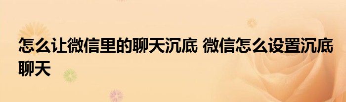 大家好,小琪來為大家解答以上問題。怎么讓微信里的聊天沉底,微信怎么設置沉底聊天這個很多人還不知道,現在讓我們一起來看看吧!