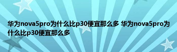大家好,小琪來為大家解答以上問題。華為nova5pro為什么比p30便宜那么多,華為nova5pro為什么比p30便宜那么多這個很多人還不知道,現在讓我們一起來看看吧!