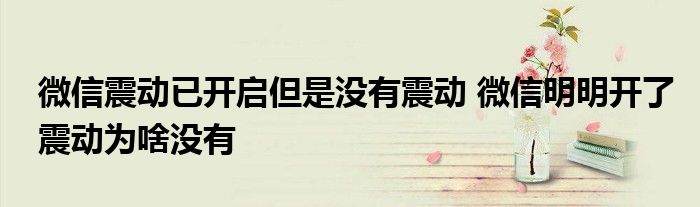 1、微信明明開了震動(dòng)為啥沒有?在哪里讓我們和你分享微信明明開了震動(dòng)為啥沒有的振動(dòng)。