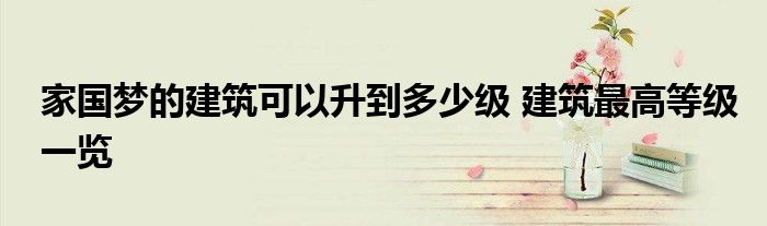 以上就是家國夢的建筑可以升到多少級的全部內容,不知道各位親愛的小伙伴是否掌握了呢?希望能提供些幫助!如果還有其他疑問,歡迎訪問當游網的相關文章。