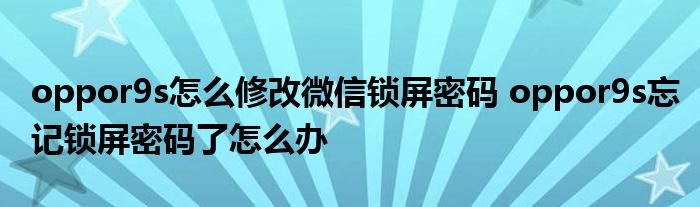 大家好,小詹來為大家解答以上問題。oppor9s怎么修改微信鎖屏密碼,oppor9s忘記鎖屏密碼了怎么辦很多人還不知道,現在讓我們一起來看看吧!