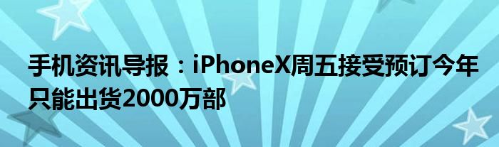 iPhone X將于本周五接受預(yù)訂,11月3日首發(fā)。凱基證券分析師郭明錤預(yù)計,iPhone X首發(fā)備貨只有200萬部至300萬部。