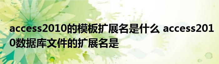 大家好,小詹來為大家解答以上問題。access2010的模板擴展名是什么,access2010數據庫文件的擴展名是很多人還不知道,現在讓我們一起來看看吧!
