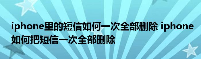 大家好,小琪來為大家解答以上問題。iphone里的短信如何一次全部刪除,iphone如何把短信一次全部刪除這個很多人還不知道,現在讓我們一起來看看吧!