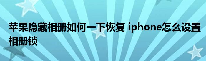 大家好,小琪來為大家解答以上問題。蘋果隱藏相冊如何一下恢復,iphone怎么設置相冊鎖這個很多人還不知道,現(xiàn)在讓我們一起來看看吧!