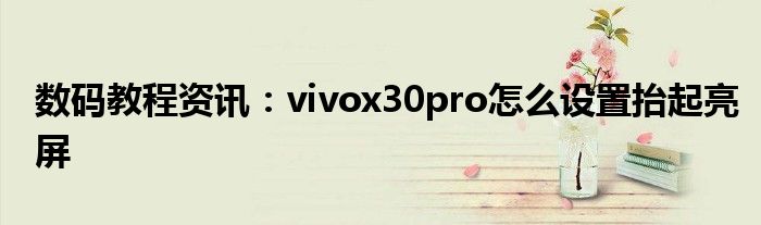 現在各種各樣的數碼設備在我們的生活當中幾乎可以說是無處不在,平時我們使用的手機,IP,電腦等等這些都屬于數碼設備,那么這些數碼設備當中會存在著很多的功能,當然在我們使用的過程當中自然也會出現說各種的問題,那么我們如何才能去解決這些問題以及使用好這些功能呢?這個時候就需要我們去了解這些功能及問題的解決方法,今天小編就來給大家分享下,關于vivox30pro怎么設置抬起亮屏方面的問題及功能的詳細內容,希望下面小編為大家分享的內容對大家來說有一定的幫助哦。vivox30pro怎么設置抬起亮屏