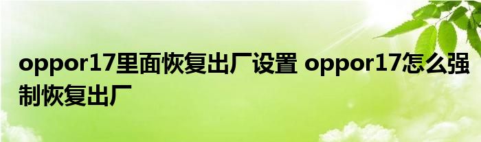 大家好,小琪來(lái)為大家解答以上問(wèn)題。oppor17里面恢復(fù)出廠設(shè)置,oppor17怎么強(qiáng)制恢復(fù)出廠這個(gè)很多人還不知道,現(xiàn)在讓我們一起來(lái)看看吧!