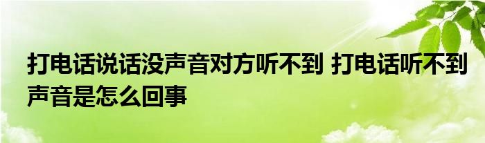 大家好,小詹來為大家解答以上問題。打電話說話沒聲音對方聽不到,打電話聽不到聲音是怎么回事很多人還不知道,現(xiàn)在讓我們一起來看看吧!