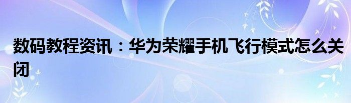 現在各種各樣的數碼設備在我們的生活當中幾乎可以說是無處不在,平時我們使用的手機,IP,電腦等等這些都屬于數碼設備,那么這些數碼設備當中會存在著很多的功能,當然在我們使用的過程當中自然也會出現說各種的問題,那么我們如何才能去解決這些問題以及使用好這些功能呢?這個時候就需要我們去了解這些功能及問題的解決方法,今天小編就來給大家分享下,關于華為榮耀手機飛行模式怎么關閉方面的問題及功能的詳細內容,希望下面小編為大家分享的內容對大家來說有一定的幫助哦。華為榮耀手機飛行模式怎么關閉?