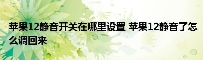 大家好,小詹來為大家解答以上問題。蘋果12靜音開關在哪里設置,蘋果12靜音了怎么調回來很多人還不知道,現(xiàn)在讓我們一起來看看吧!