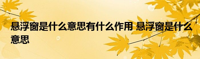 大家好,小琪來為大家解答以上問題。懸浮窗是什么意思有什么作用,懸浮窗是什么意思這個很多人還不知道,現在讓我們一起來看看吧!