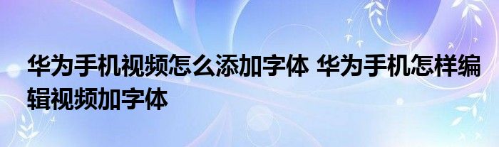 大家好,小詹來為大家解答以上問題。華為手機視頻怎么添加字體,華為手機怎樣編輯視頻加字體很多人還不知道,現在讓我們一起來看看吧!