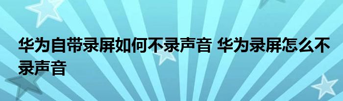 大家好,小琪來為大家解答以上問題。華為自帶錄屏如何不錄聲音,華為錄屏怎么不錄聲音這個很多人還不知道,現在讓我們一起來看看吧!