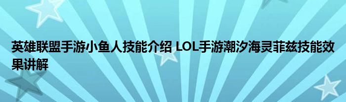 以上就是關(guān)于LOL手游潮汐海靈菲茲技能效果講解的內(nèi)容,讓我們一起來期待這個(gè)英雄吧,喜歡這個(gè)英雄的玩家們千萬不要錯(cuò)過哦!
