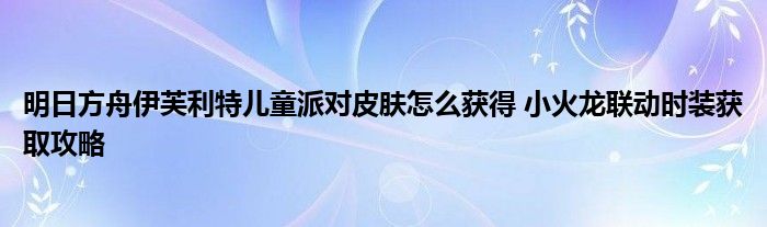 明日方舟伊芙利特兒童派對(duì)皮膚怎么獲得 小火龍聯(lián)動(dòng)時(shí)裝獲取攻略