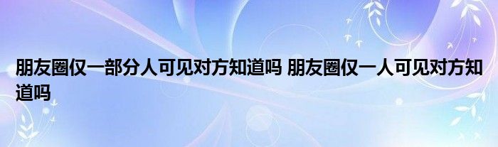 大家好,小琪來為大家解答以上問題。朋友圈僅一部分人可見對方知道嗎,朋友圈僅一人可見對方知道嗎這個很多人還不知道,現在讓我們一起來看看吧!