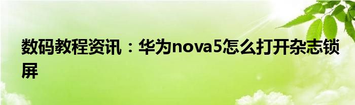 現在各種各樣的數碼設備在我們的生活當中幾乎可以說是無處不在,平時我們使用的手機,IP,電腦等等這些都屬于數碼設備,那么這些數碼設備當中會存在著很多的功能,當然在我們使用的過程當中自然也會出現說各種的問題,那么我們如何才能去解決這些問題以及使用好這些功能呢?這個時候就需要我們去了解這些功能及問題的解決方法,今天小編就來給大家分享下,關于華為nova5怎么打開雜志鎖屏方面的問題及功能的詳細內容,希望下面小編為大家分享的內容對大家來說有一定的幫助哦。華為nova5怎么打開雜志鎖屏?