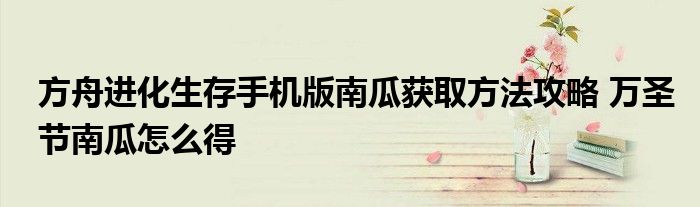 在方舟生存進化游戲里萬圣節即將要來臨了,南瓜會出現在活動里。那么下面小編就與玩家們分享下關于方舟進化生存手機版南瓜獲取方法攻略,玩家們一起來看看吧。
