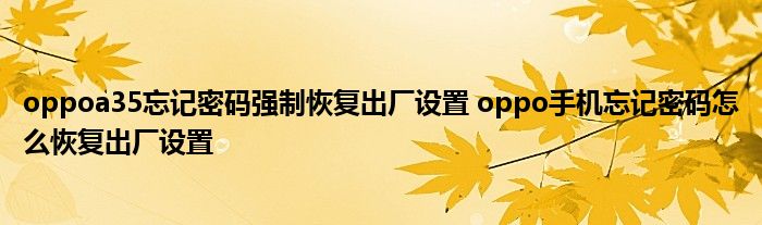 大家好,小琪來為大家解答以上問題。oppoa35忘記密碼強制恢復出廠設置,oppo手機忘記密碼怎么恢復出廠設置這個很多人還不知道,現在讓我們一起來看看吧!