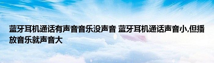 大家好,小詹來為大家解答以上問題。藍牙耳機通話有聲音音樂沒聲音,藍牙耳機通話聲音小,但播放音樂就聲音大很多人還不知道,現在讓我們一起來看看吧!