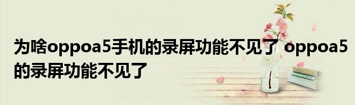大家好,小詹來為大家解答以上問題。為啥oppoa5手機(jī)的錄屏功能不見了,oppoa5的錄屏功能不見了很多人還不知道,現(xiàn)在讓我們一起來看看吧!
