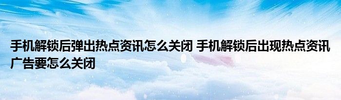 大家好,小詹來為大家解答以上問題。手機解鎖后彈出熱點資訊怎么關閉,手機解鎖后出現熱點資訊廣告要怎么關閉很多人還不知道,現在讓我們一起來看看吧!